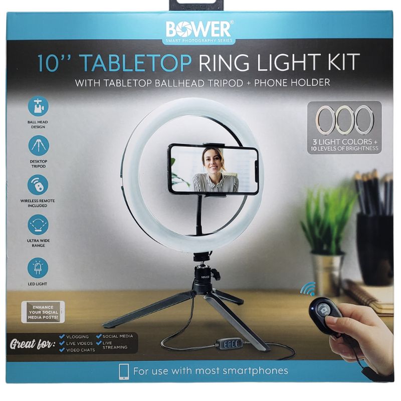 SELFIE RING LIGHT 10IN TRIPOD+PH HOLDER W/3 LIGHT COLOUR AND REMOTE
